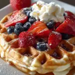 - Kokosraspeln: Für eine exotische Note kannst du die Waffeln mit gerösteten Kokosraspeln bestreuen.