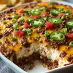 Ein köstlicher Dip aus Rinderhack, Frischkäse und geschmolzenem Käse, perfekt für Partys und gemütliche Abende.
